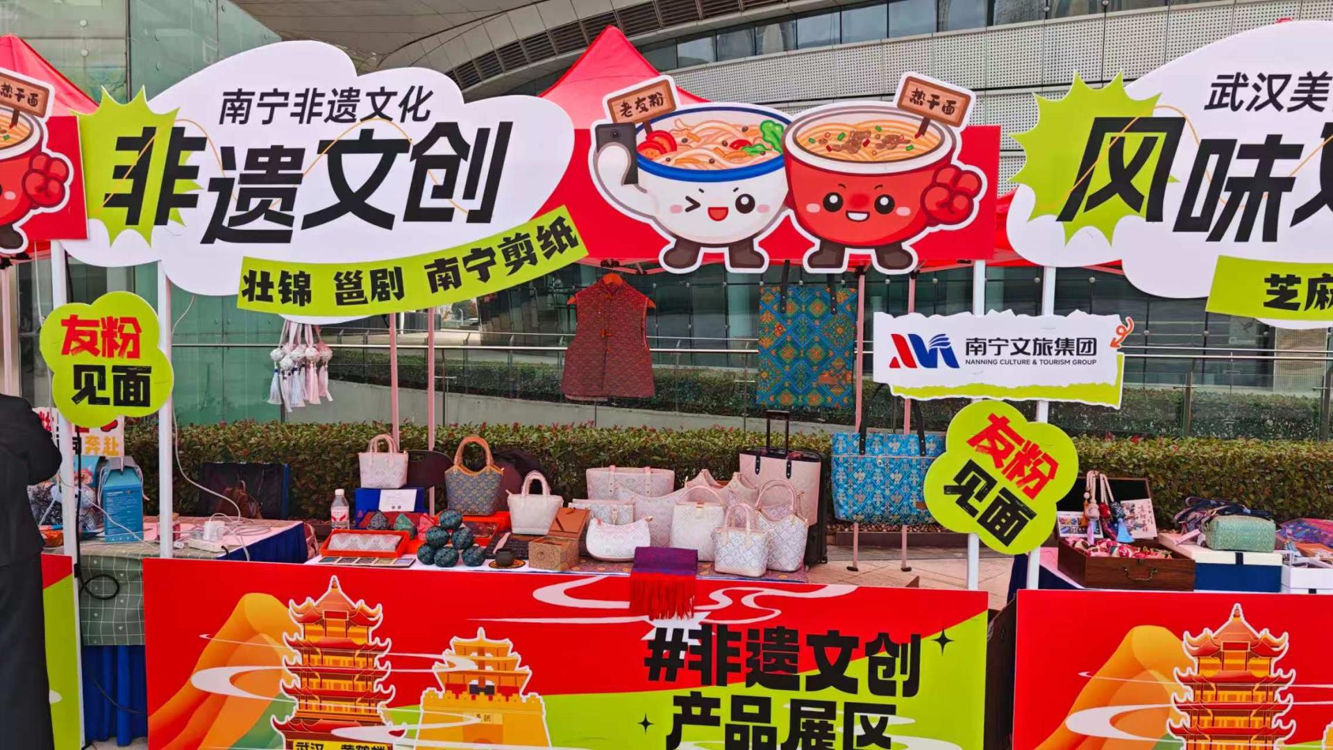 文化输出层面,南宁文旅集团在演唱会场外精心打造南宁文化主题展区,将旗下银河公司南宁老友粉、鸡仔饼、五象山庄壮锦小象等特色IP产品集中展示,以"演艺+市集"的创新模式,让南宁特色产业链资源走进武汉市场。更联合南宁市文广旅局发起"南宁有礼"赠礼活动,精选南宁特色产品赠予武汉歌迷,以“小礼物”传递“大文化”,实现城市文化的精准传播与情感共鸣。