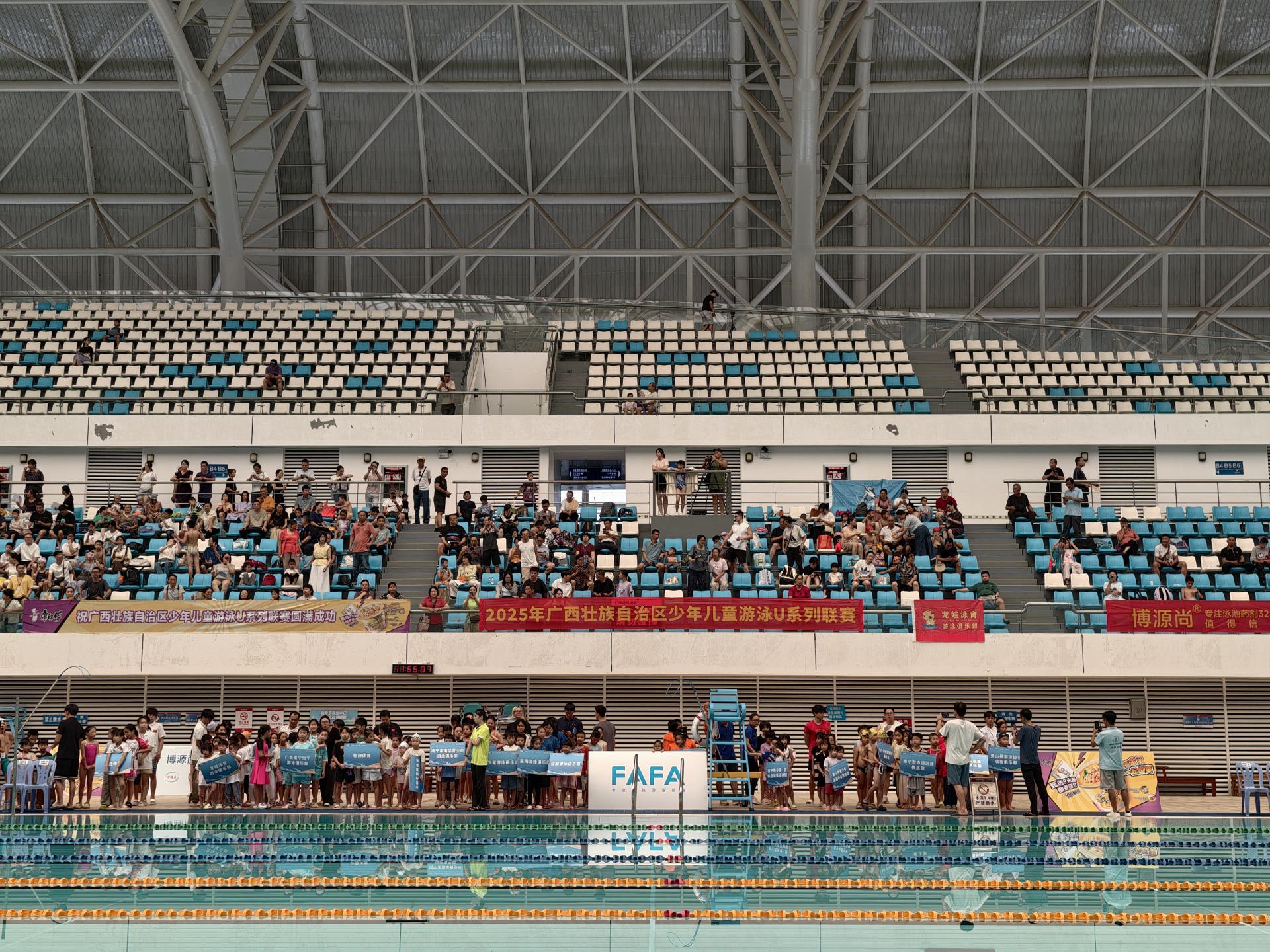 广西体育中心作为南宁文旅集团深耕“文体旅融合”赛道的重要载体,依托集团在城市文体资源运营、赛事活动策划执行等方面的优势,为赛事提供了专业场馆保障、标准化赛事服务及安全后勤支撑,全面完成泳池水质调试、场馆设施检修、安全通道排查等筹备工作,确保赛事高效有序落地。既为小将们打造了专业游泳竞技平台,也进一步助力城市文体活力提升。