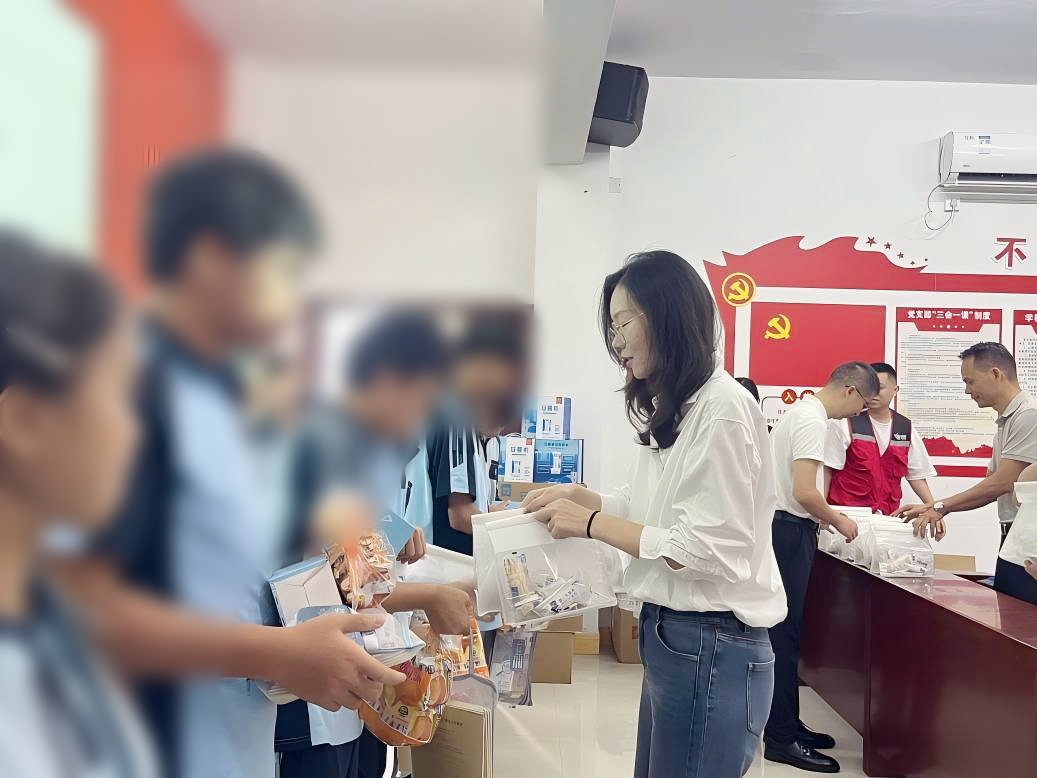 慰问过程中,公司团队成员与孩子们亲切交谈,耐心倾听学习生活日常,亲手递上“暖心礼包”,轻声叮嘱他们用心学习、快乐生活,鼓励保持积极向上心态。“有了新文具,我一定会更认真学习!”那陈镇那蒙小学一名留守学生接过礼包后,脸上洋溢着灿烂的笑容,语气坚定地说道。那马镇那僚小学校长也由衷感慨:“南宁供应链集团在中秋佳节前送来关怀,让孩子们真切感受到被惦记、被关爱,这个中秋对他们而言,必将成为特别温暖的记忆。”