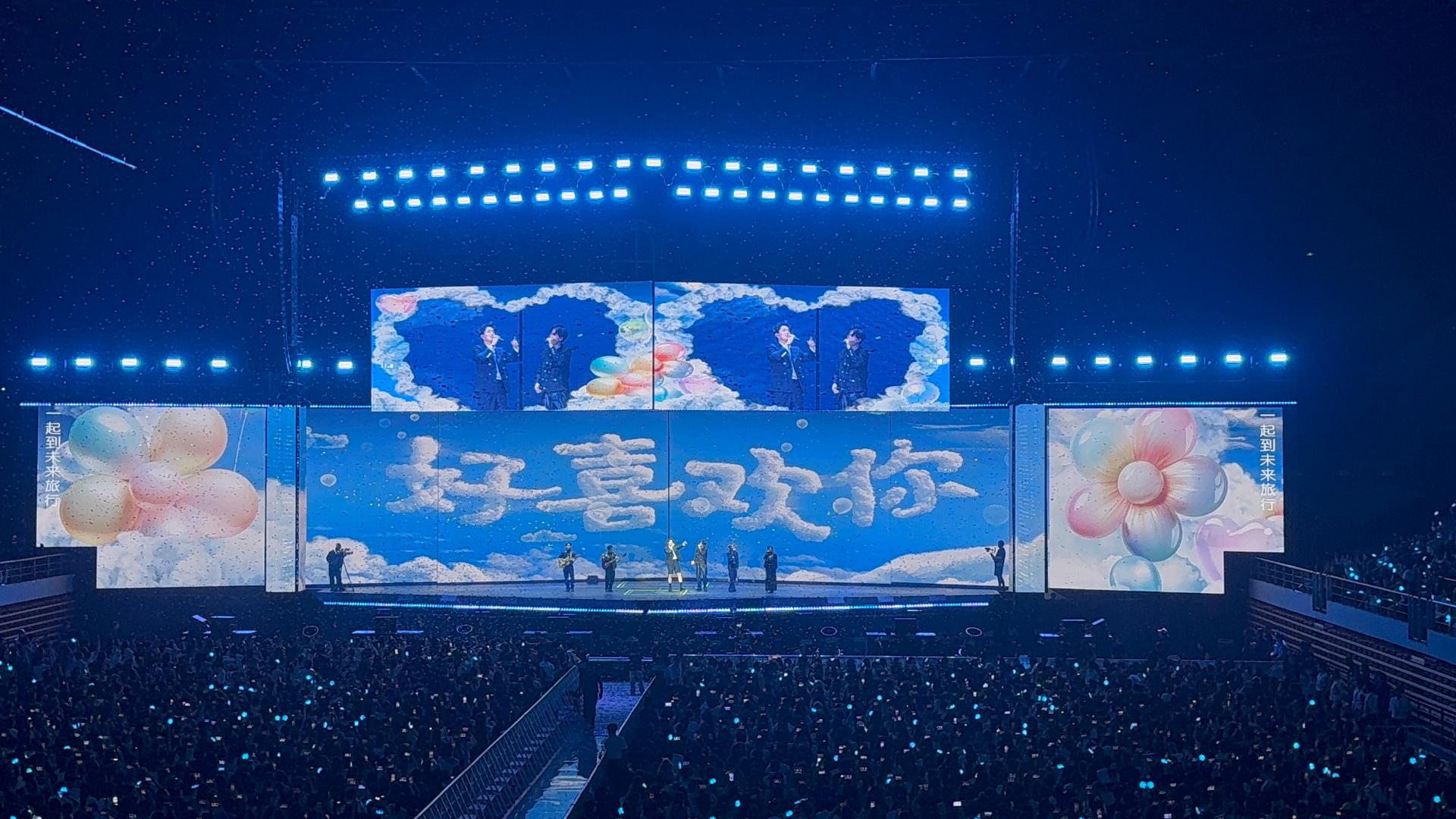 灯光骤亮如白昼,与全场挥动的荧光海交相辉映,形成极具张力的视觉冲击。当《晚安》前奏响起时,将歌迷带入静谧的情感世界。