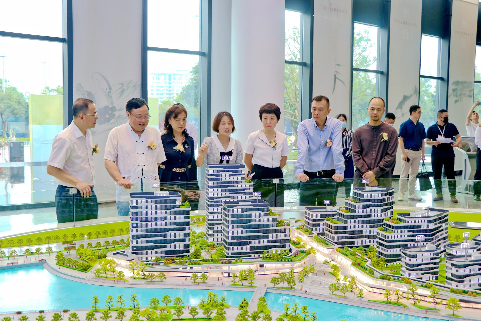 现场嘉宾及各界人士走进文创中心营销中心,感受以“海上丝绸之路”为主题的城市艺术客厅的魅力,并聆听项目沙盘讲解。营销中心内还设置了有时艺术馆,展出了广西本土画家陈昌远的水墨画作品。