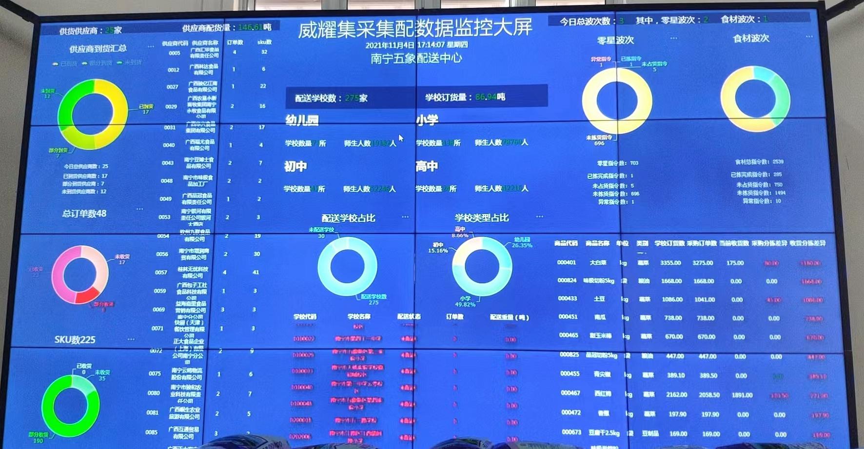 今年以来,威耀供应链公司不断优化提升硬件能力,增强企业运营活力,激发企业发展动能,全力保障南宁市公办学校食材集采集配项目运行,确保师生“舌尖上的安全”。截至目前,项目服务师生超55.23万人,配备超250台冷链车,已建有南宁市区、横州市、隆安县10个标准化仓库,9月开学将新增6个共计达16个仓库全面保供。