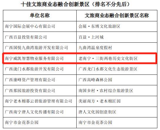 近日,由南宁市文化广电和旅游局主办、南宁市旅游协会承办的2021年南宁市“十佳文旅项目(品牌)”评选活动落下帷幕。老南宁·三街两巷历史文化街区在此次评选中荣获“十佳新型文化空间”“十佳文旅商业态融合创新景区”称号。这是今年继获得“首批国家级旅游休闲街区”称号后又一次斩获殊荣。