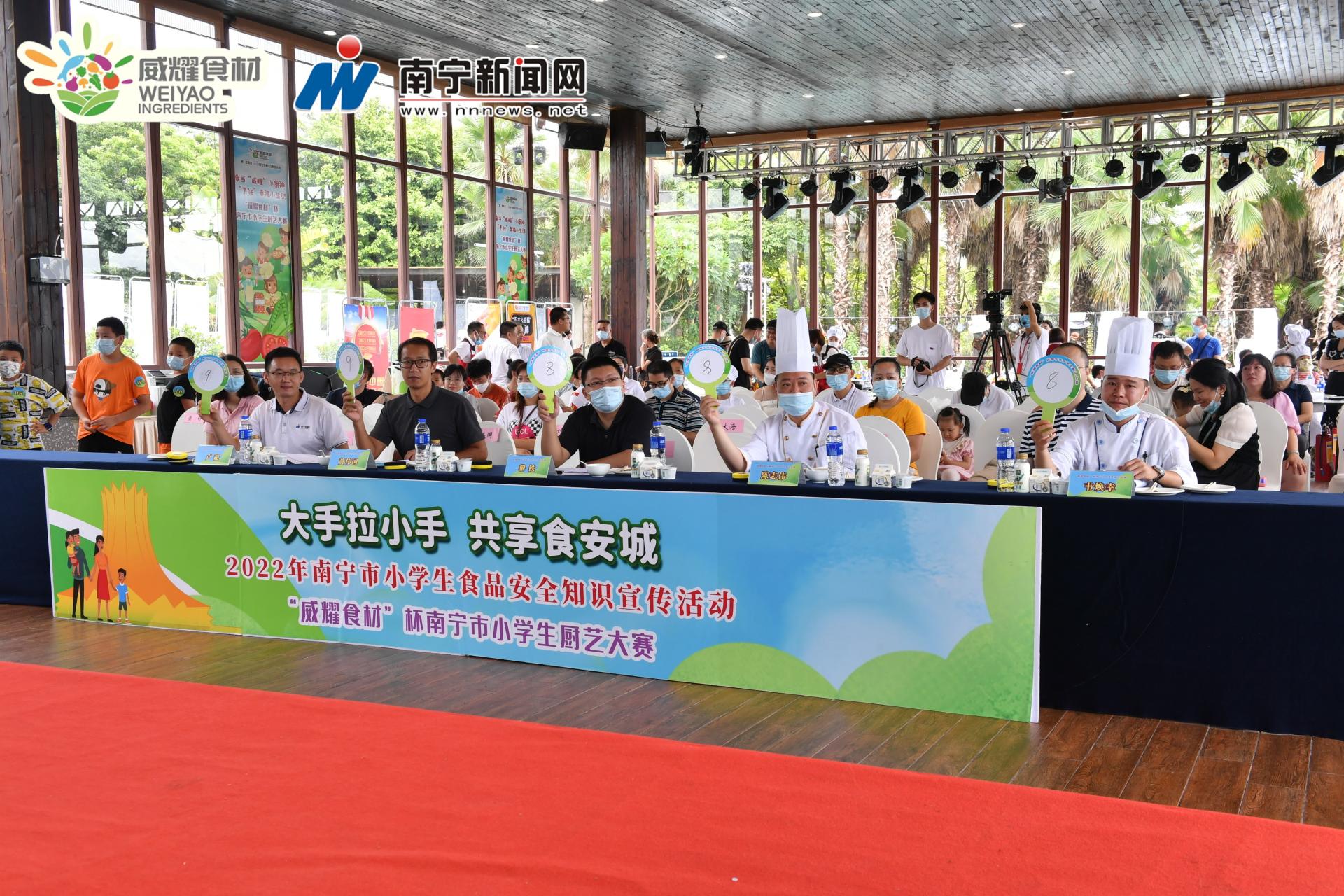 黄金炸大虾、雪碧糖醋排骨、土豆咖喱鸡、水煮牛肉……你敢相信这一道道看似复杂的“美味佳肴”是小学生烹饪出来的吗?8月6日,“大手拉小手 共享食安城”2022年南宁市小学生食品安全知识宣传活动及“威耀食材”杯南宁市小学生厨艺大赛在南宁五象山庄湖畔礼堂举行,经过视频报名选拔,20组“小厨神”在现场各显神通——踊跃竞答食品安全知识、在料理台上大展“厨神”风范,为南宁市创建国家食品安全示范城市助力。