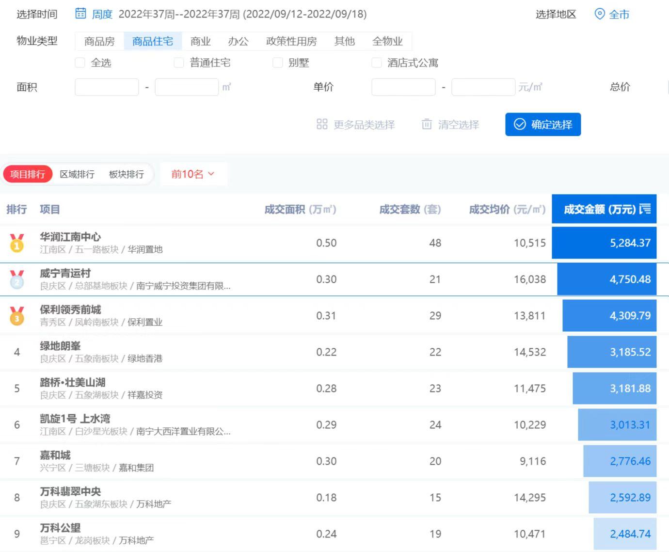 “金九银十”是楼市传统旺季。近期,南宁楼市出现了商品房备案成交面积同比降幅收窄、环比上涨的向好迹象。世界杯在线(China)青运村项目抓住有利时机,积极开展促销工作,经过全体销售人员的努力,在2022年第37周的销售成绩斐然,获得了南宁市第二名的好成绩。