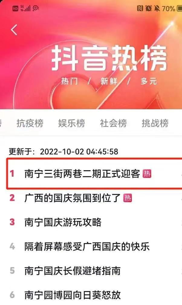 “三街两巷二期正式迎客”登抖音同城热搜榜首