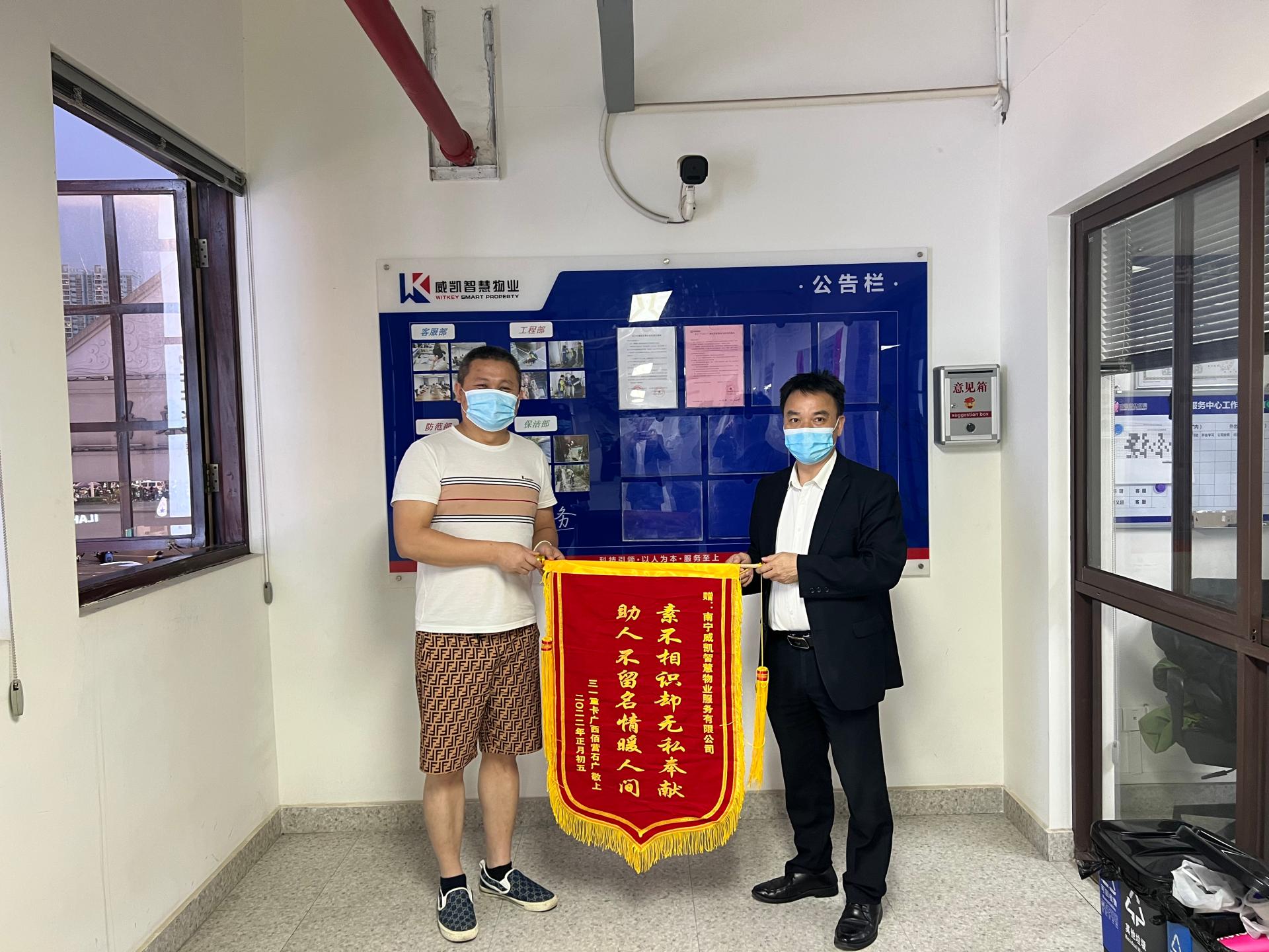 其次,聚焦优化服务。建立物业服务标准体系,完善服务流程,规范服务标准。各项目物业服务中心实施标准化服务、专业化服务、精细化服务的“三化”服务,全年为民办实事74件,获得表扬信6封、锦旗10面,业主满意度显著提升。其中,南宁市民中心建筑面积约17万平方米,囊括60个政府职能部门和公共服务企业的服务事项432项,日均接待办事群众5000多人次。2022年6月1日威凯智慧物业正式进驻南宁市民中心,对于该项目进驻单位多、服务面积大、接待人员广的特殊性,项目物业服务中心积极打造服务模式,实施“三化”服务,以“用户至上,以业主满意度为核心”为服务理念,植入报事系统,进驻单位可以通过扫码进入报事平台进行投诉报事投诉下单,项目要求安全纠纷问题5分钟内到到场处理,环境卫生问题15分钟内解决,并建立了“事前预防,事中控制,事后有反馈”的三级处理机制。服务意识和服务品质的提升获得业主单位一致好评,在物业服务满意度考核中,多家进驻单位均给予满分。