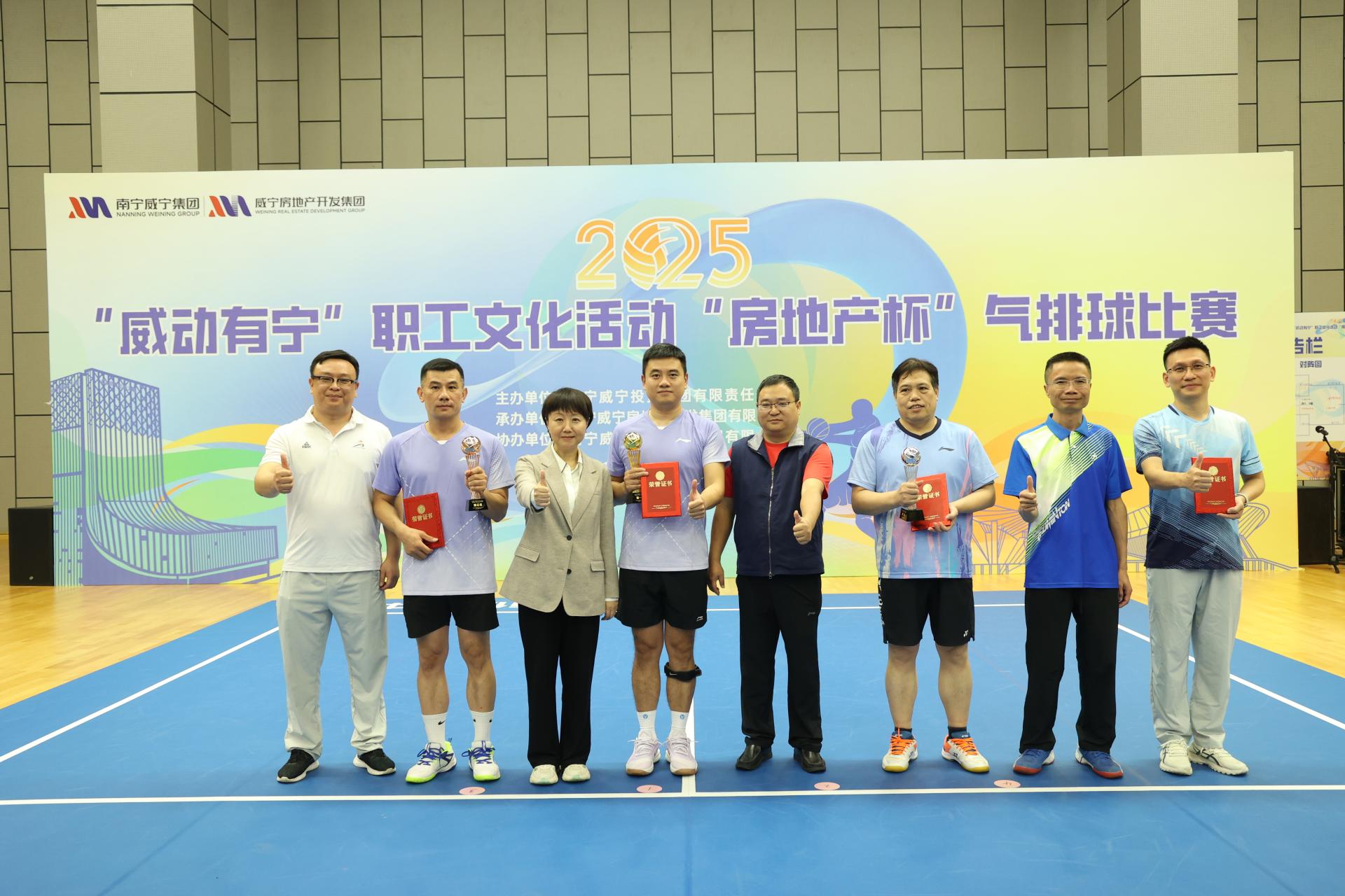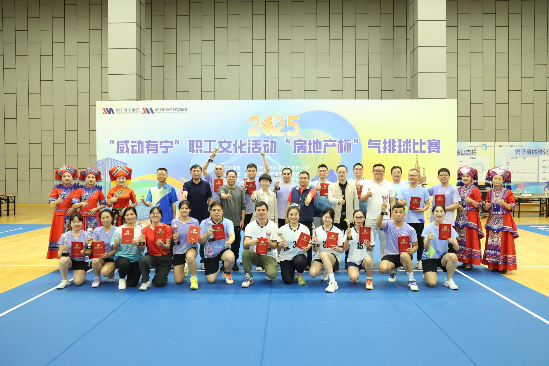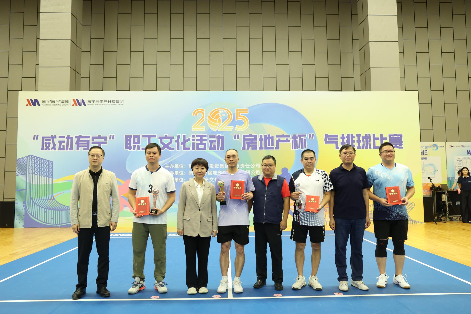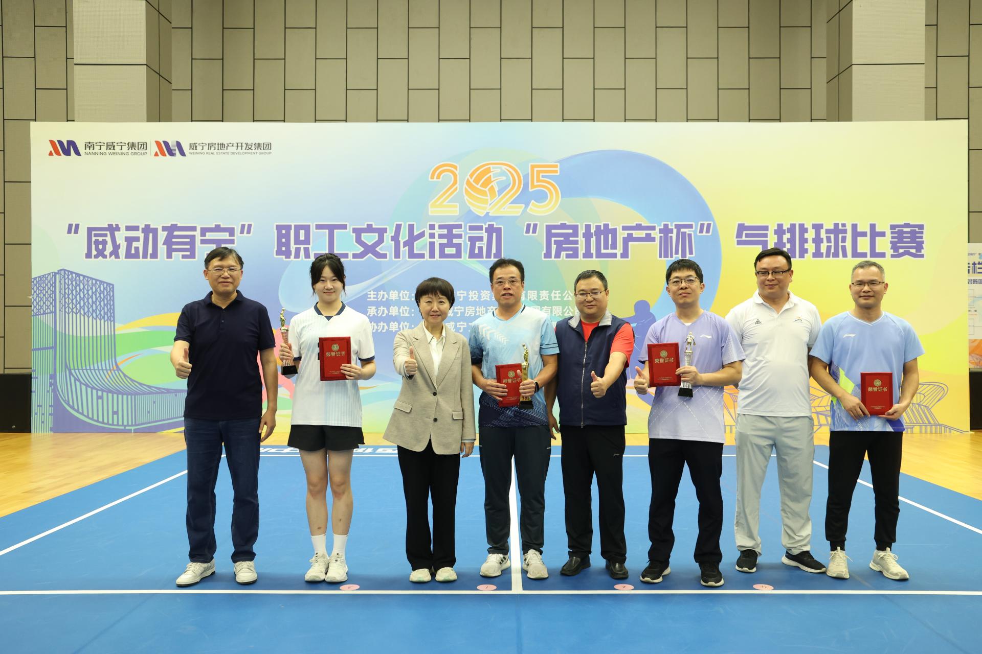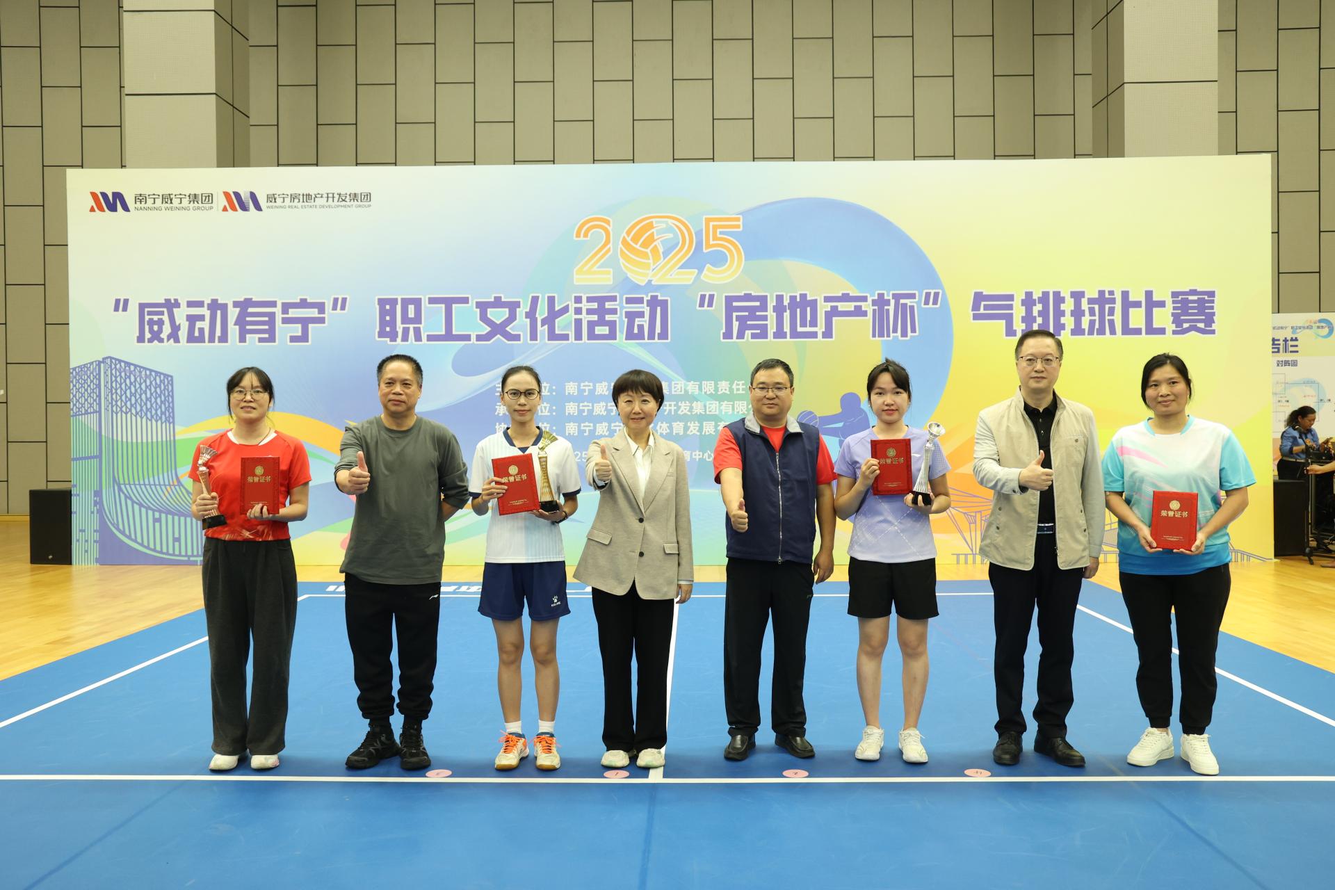2025年11月16日,随着最后一场气排球赛事的终场哨响,世界杯在线2025年“威动有宁”职工文化活动在团结、热烈、拼搏的氛围中迎来圆满收官。当天举行的“房地产杯”气排球比赛颁奖仪式为这场贯穿全年的文化盛宴画上了精彩的句号。集团党委书记、董事长刘巧瑛出席仪式并致闭幕词,集团党委副书记、总经理苏庆威宣布获奖名单,集团领导班子成员为在系列赛事中获奖的队伍颁奖。