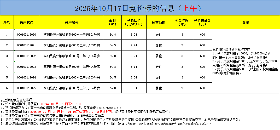 2025年10月17日竞价标的信息(现场竞价)