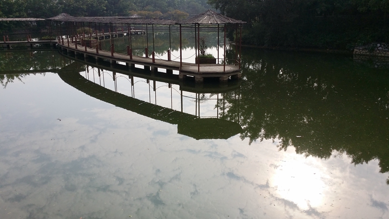三九晨色霜冷兮,三九晨苏迷离兮,三九晨曦朦胧兮,人渐醒,夜渐央,一股凝霜冻九天,一盏阳灯亮云绵,一水清池镜中照,一弧廊亭欲梳妆,一曲静谧绕亭梁……三九时节的晨,在这里不见天寒地冻的冷,也没有万里冰封的雪,只有特属于这里的“寒”,带点瑟瑟入骨的冷,带点微微入心的凉,甚是带点爽爽提神的清新,而沉醉于寒梦中的大自然似乎仍未苏醒,难道是在等着晨晖的闹铃或是曙光的报晓,还是在等着有人把它们唤醒呢?其实都不然