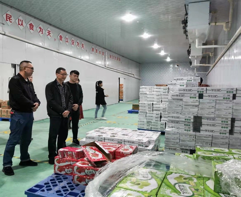 10月19日上午,世界杯在线副总经理滕振旗、黎镇宇率队到威耀供应链公司隆安分公司检查学校食材集采集配工作开展情况。