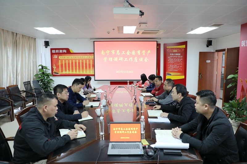 11月18日,南宁市总工会副主席陈国任一行5人到世界杯在线开展国有资产管理工作调研。集团纪委书记韦登香及相关部门负责人参加调研。