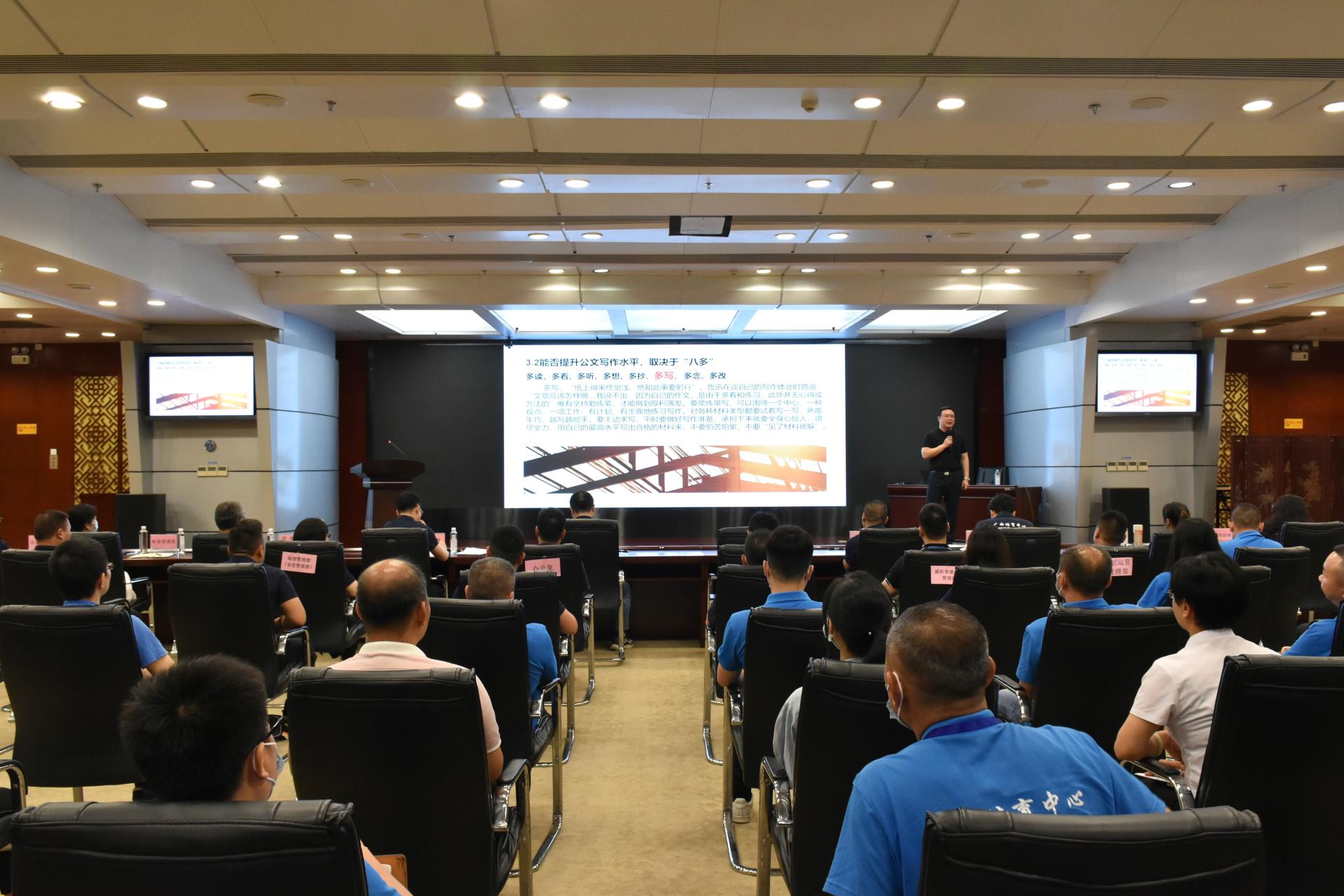 2022年7月11日上午,世界杯在线(China)文体公司举行公文写作和办理培训会。此次培训由党支部书记、董事长黄志炜主讲。黄志炜同志从“公文是什么、写好公文对提升工作对个人事业的特殊作用、如何速成公文、常见错误及其对策、各层级人员公文工作责任要求”等11个方面着手,既有详尽规范的基础概念、也有大家关心的实用性“技巧、攻略”,还有“八心(决心、信心、诚心、用心、良心、细心、专心、恒心)”“八多(多读、多看、多听、多...