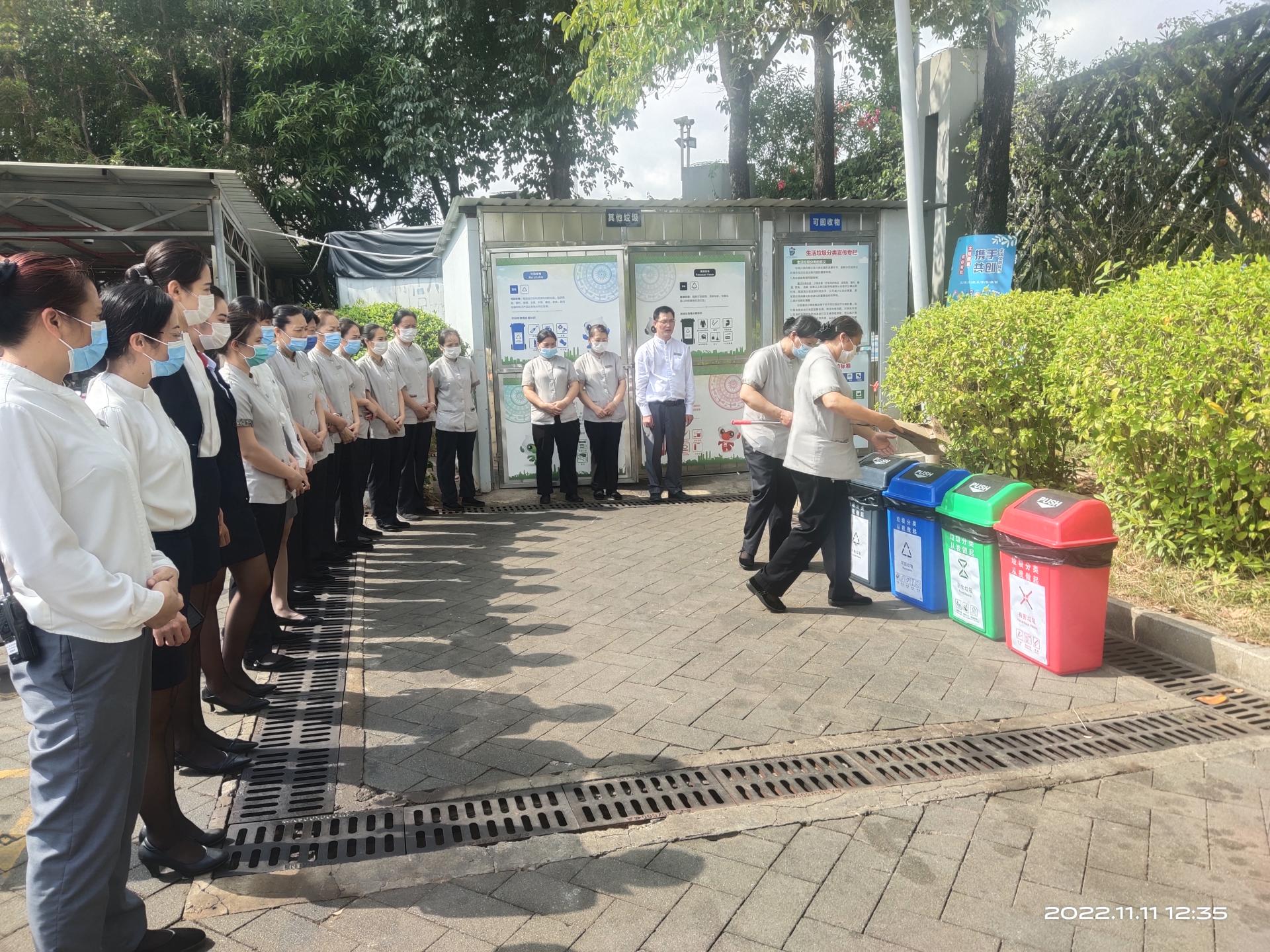 为进一步提高全体员工垃圾分类意识和技能,加强酒店垃圾分类管理,11月11日中午,世界杯在线(China)酒店公司所属五象山庄公司组织餐饮部、房务部全体员工开展垃圾分类知识学习培训活动,共有40人参加培训。本次培训分为理论学习和现场实践教学两个环节。首先集中到办公室学习垃圾分类有关的文件制度精神,进一步认识到垃圾分类工作的重要性,夯实理论基础。在现场教学环节,全体人员分别集中在18号楼垃圾...